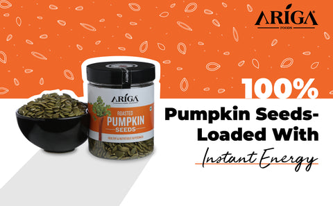 Ariga Foods pumpkin seeds roasted to perfection, crunchy and delight and packaged in pet jar for on the go immunity.