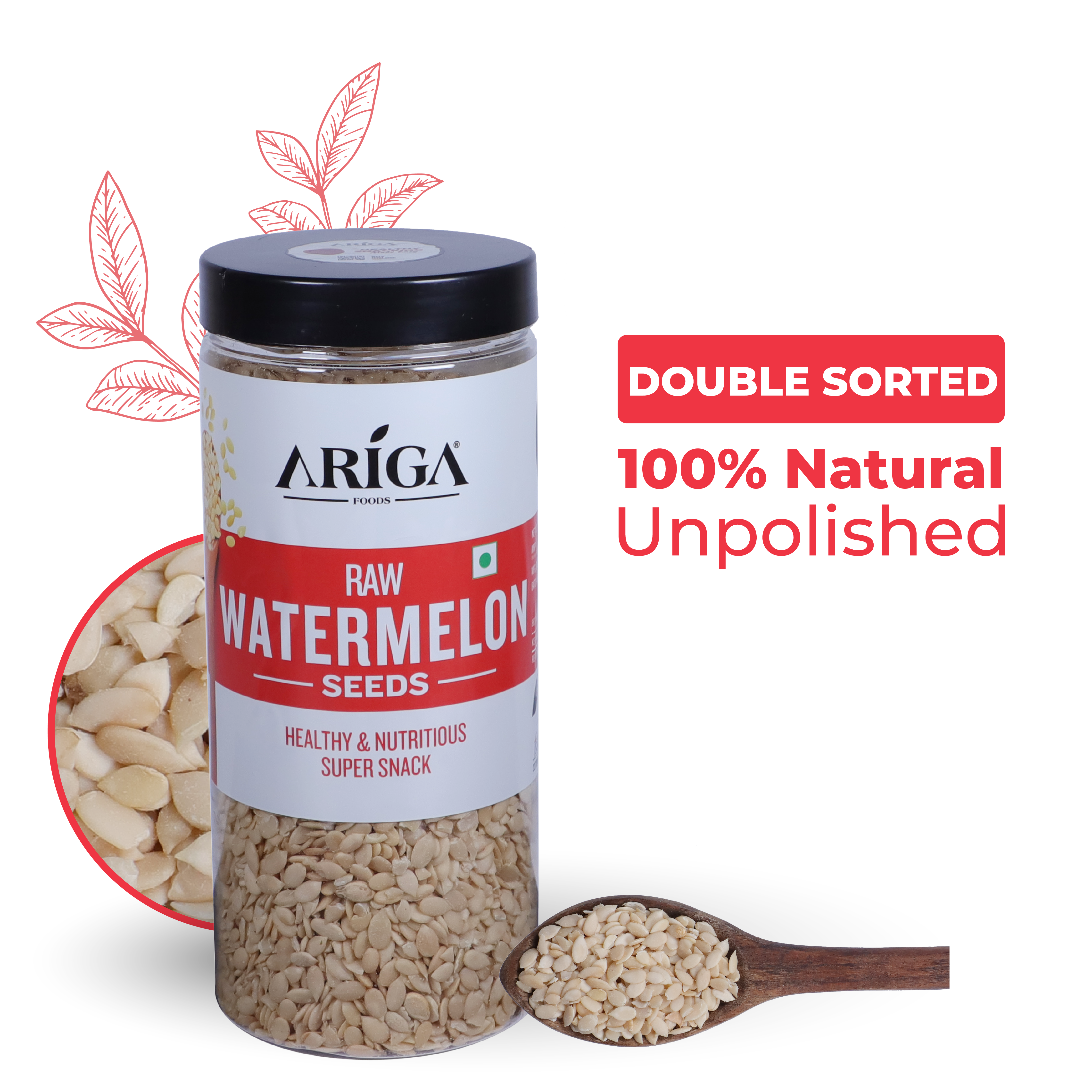 Ariga's Premium AAA grade Watermelon Seeds for weight loss are a no regret choice. At Ariga, we believe in procuring only the highest quality products. That's why our premium watermelon seeds are made with 100% natural, non-GMO seeds that are tasty and fresh. - Handpicked premium natural quality - Sourced natural and fresh - No added oil and preservatives - Packed in a food grade re-usable pet jar - Wad seal to retain the freshness So whether you're looking for watermelon seeds for weight loss or a quick and easy snack to munch on throughout the day or a tasty addition to your favourite recipes, Ariga's Premium Watermelon Seeds for eating are the perfect choice. Try them today and experience the delicious taste and nutritional benefits for yourself! |