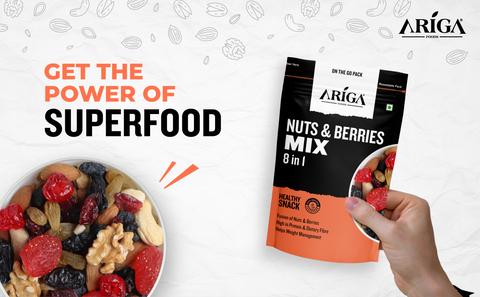 Ariga Foods Berries and Nuts mix is a perfect choice to have as an anytime snacking for odd hour hanger pangs.